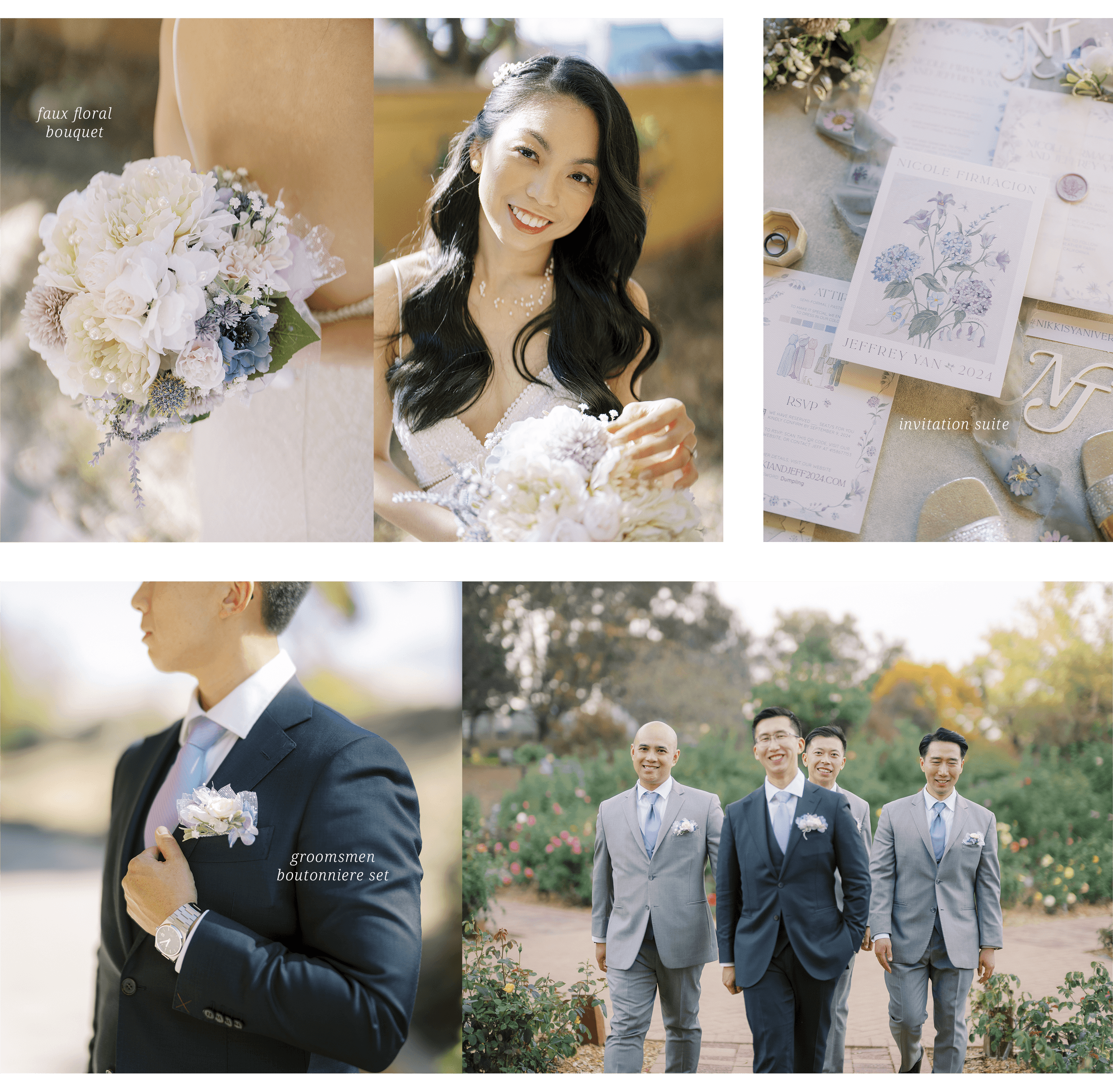 We designed a cohesive wedding aesthetic that reflected Nicole & Jeffrey’s unique style. From the mood board and color palette to custom stationery, website, signage, faux florals, table setting, and menu card, every detail was thoughtfully crafted to bring their vision to life. Our goal was to craft a stylish and elevated celebration that reflected their love story, all while staying within budget and creating an unforgettable experience for their guests. I worked closely with them to ensure every element felt personal and perfectly tailored to their big day.
